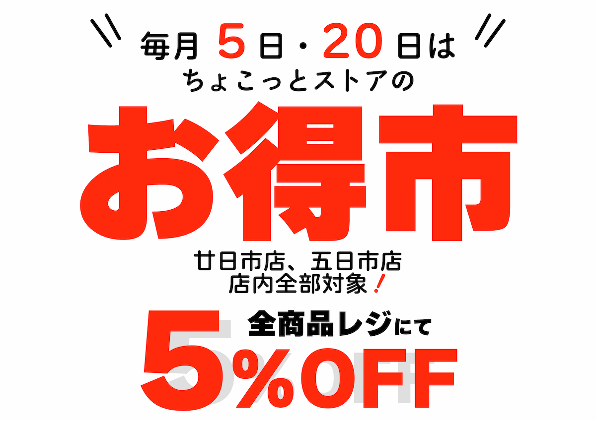 毎月5日・20日、両店舗同時に「お得市」を開催いたします。